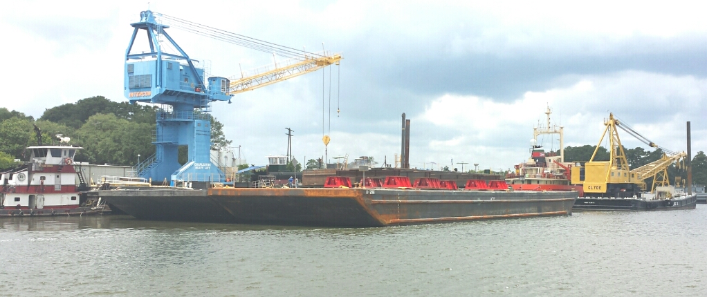 This poor barge ran aground. Notice the itty bitty Sea Tow trying to pull him off the shoal. |